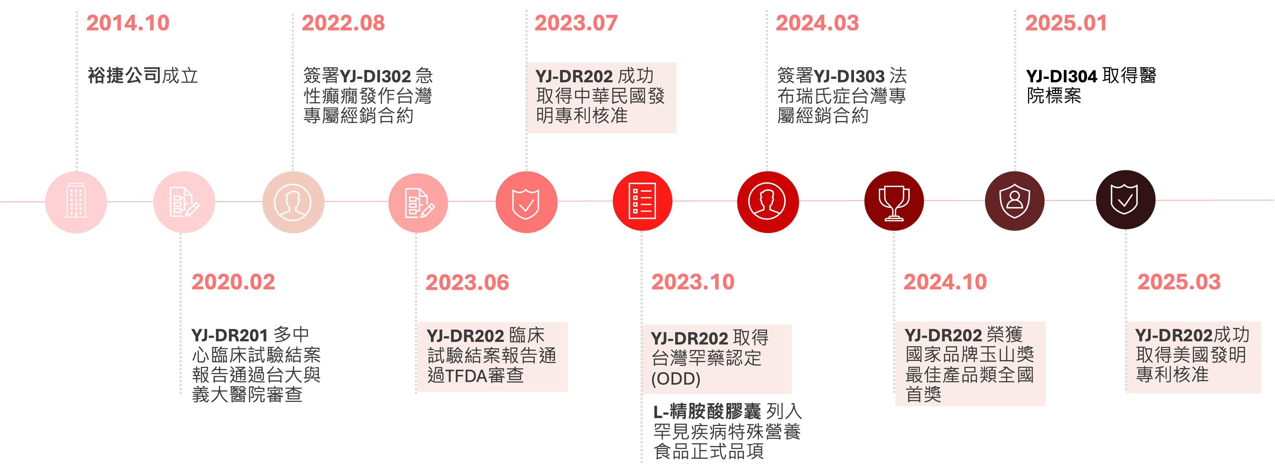 裕捷以「罕病治療創新與精準醫療整合」為核心策略,建立從研發 → 臨床 → 上市後監測的完整價值鏈。